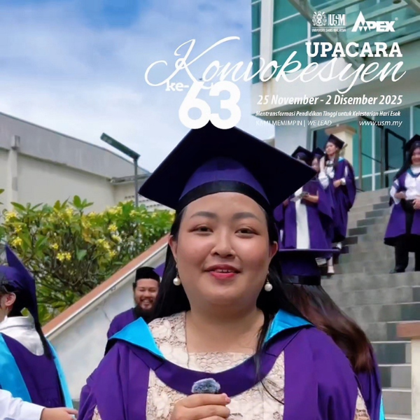 USM, PULAU PINANG, 29 November 2025 – Universiti Sains Malaysia terus mengukuhkan reputasinya sebagai institusi penyelidikan terkemuka apabila Sidang Kelapan Konvokesyen Ke-63 hari ini meraikan ratusan saintis muda yang berjaya menamatkan pengajian dalam pelbagai bidang sains kajihayat. |