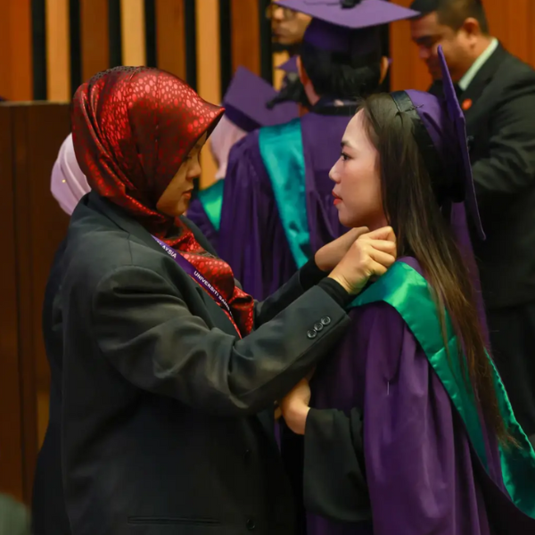 USM PULAU PINANG, 27 November 2025 – Detik penuh emosi dan kebanggaan terserlah apabila pasangan ayah dan anak, Dr. Rafizal Abd Rahim dan Nur Umaira Diba Rafizal, diraikan sebagai graduan pada Konvokesyen USM Ke-63, meskipun menerima ijazah pada sidang berbeza namun tetap berkongsi momen luar biasa dalam sejarah keluarga mereka. |