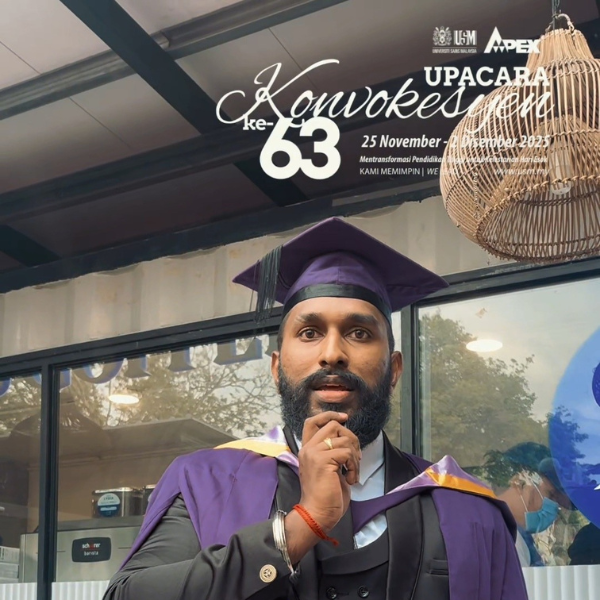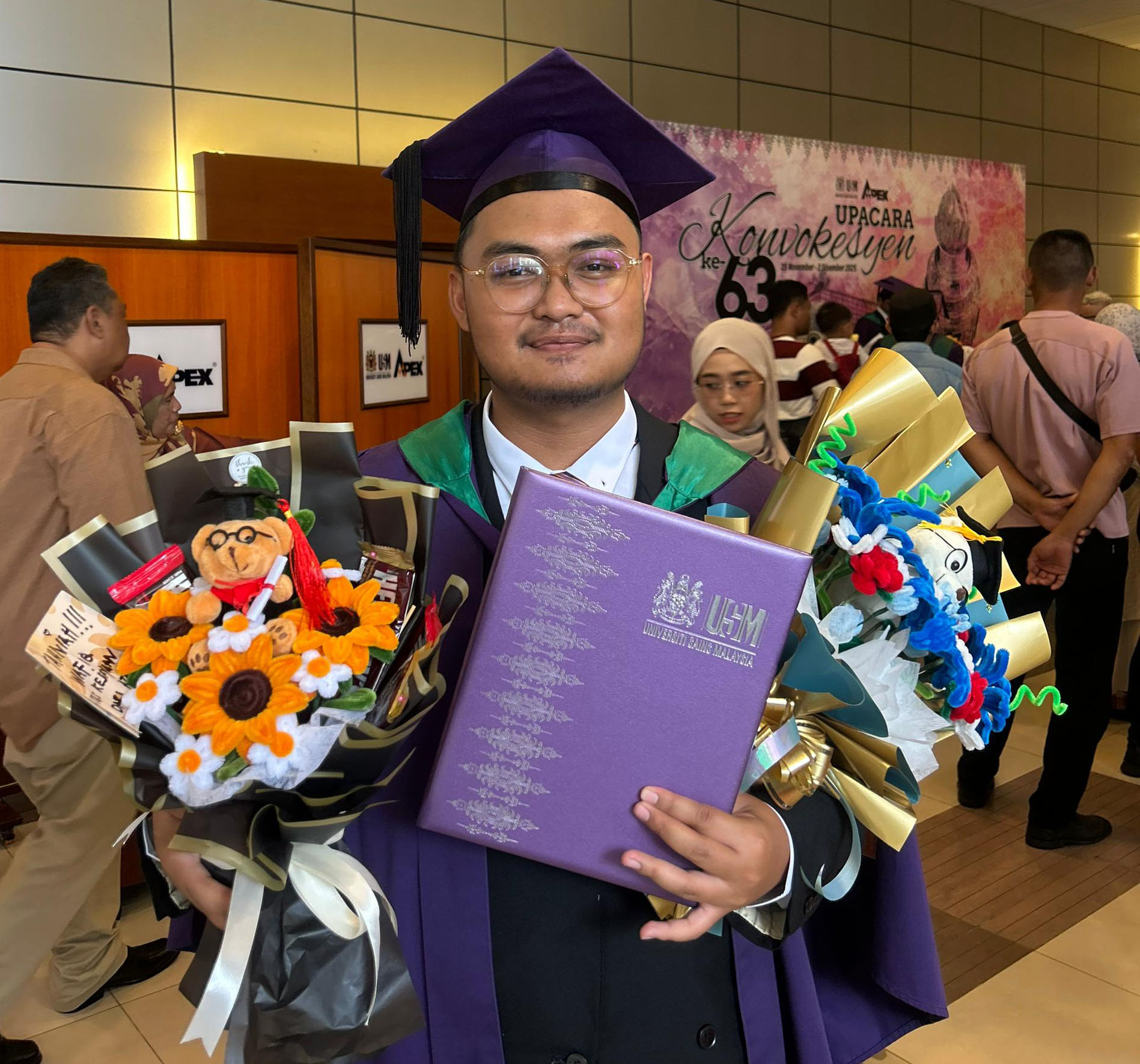 USM PULAU PINANG, 30 November 2025 – Kesempitan hidup dan keinginan untuk meringankan beban kedua ibu bapanya pernah membuatkan seorang graduan Universiti Sains Malaysia (USM) hampir berputus asa. |