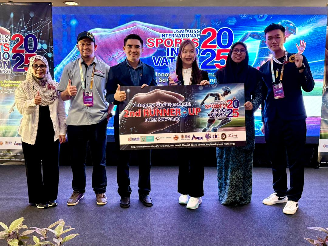 PULAU PINANG, 25 November 2025 – Dua pelajar daripada Bahagian Rekabentuk Produk, Pusat Pengajian Seni (SOTA), Universiti Sains Malaysia (USM) telah mengharumkan nama universiti apabila meraih pingat emas di USM-AUSC International Sports Innovation Challenge 2025 melalui inovasi yang secara langsung menyumbang kepada Matlamat Pembangunan Mampan 3 (SDG 3): Kesihatan dan Kesejahteraan yang Baik, dengan SOTA menzahirkan rasa bangga terhadap kejayaan tersebut. |