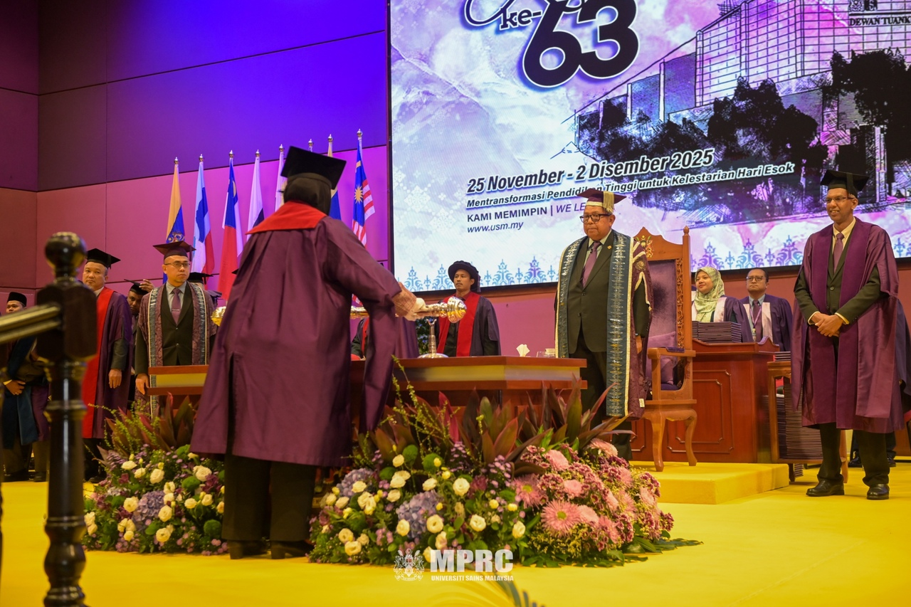 USM, PULAU PINANG, 29 November 2025 – Universiti Sains Malaysia (USM) terus mengukuhkan reputasinya sebagai hab kecemerlangan akademik apabila Sidang Keenam Upacara Konvokesyen Ke-63 diadakan di Dewan Tuanku Syed Putra (DTSP), sekali gus menampilkan barisan graduan dan penyelidik baharu dalam bidang bioperubatan, forensik dan kesihatan awam. |